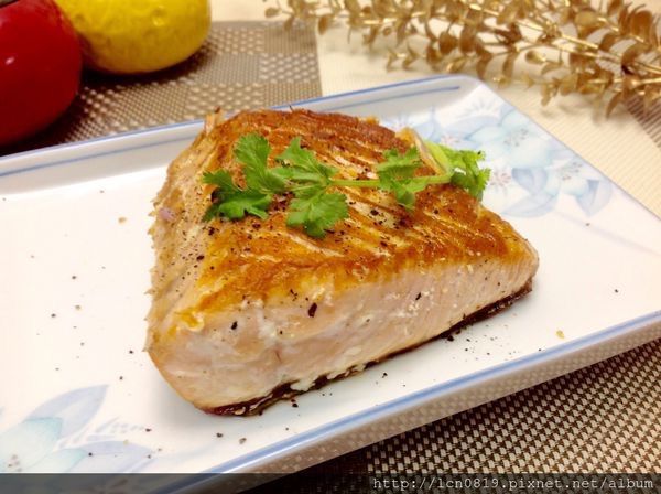 利用烤箱或氣炸鍋就可以幫你料理出香噴噴,色澤鮮嫩的鮭魚排,不必多餘的調味,撒上七味粉足以銷魂了