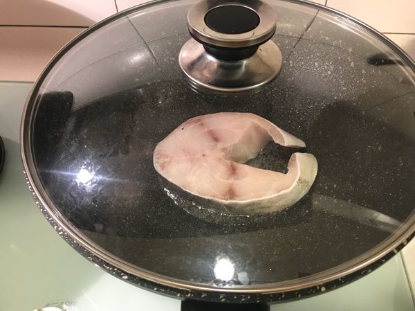 魚解凍後,用水洗淨,再用廚房餐巾紙將魚表面血水吸乾,兩面抹上適量鹽巴。